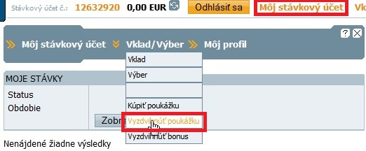 4. Poukážku si potom môžete vyzdvihnúť po prihlásení sa k svojmu účtu v Bet-At-Home kliknutím na odkaz Môj stávkový účet a potom cez menu Vklad / Výber zvoliť možnosť Vyzdvihnúť poukážku.